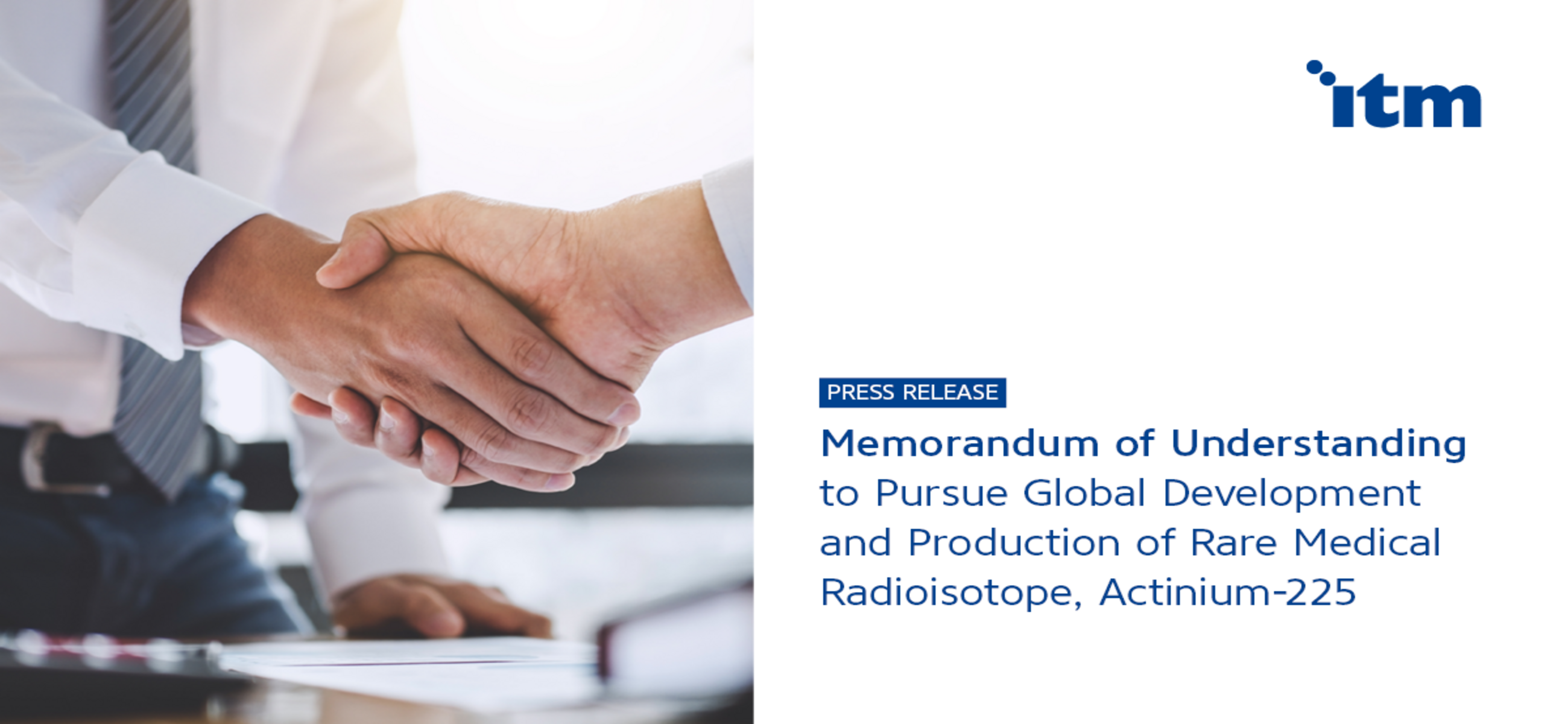 Garching/Munich, Germany and Chalk River, Ontario, Canada – October 18, 2021 – ITM Isotope Technologies Munich SE, a leading radiopharmaceutical biotech company, and Canadian Nuclear Laboratories (CNL), Canada’s premier nuclear science and technology organization, today announced that the companies have signed a Memorandum of Understanding (MoU) to explore the development and industrial-scale production of Actinium-225, an extremely rare alpha-emitting radioisotope with heightened potential in precision oncology. Under the terms of the agreement, the organizations will collaborate on the development, manufacturing, and distribution pathways for the medical radioisotope. Further details of the agreement have not been disclosed.