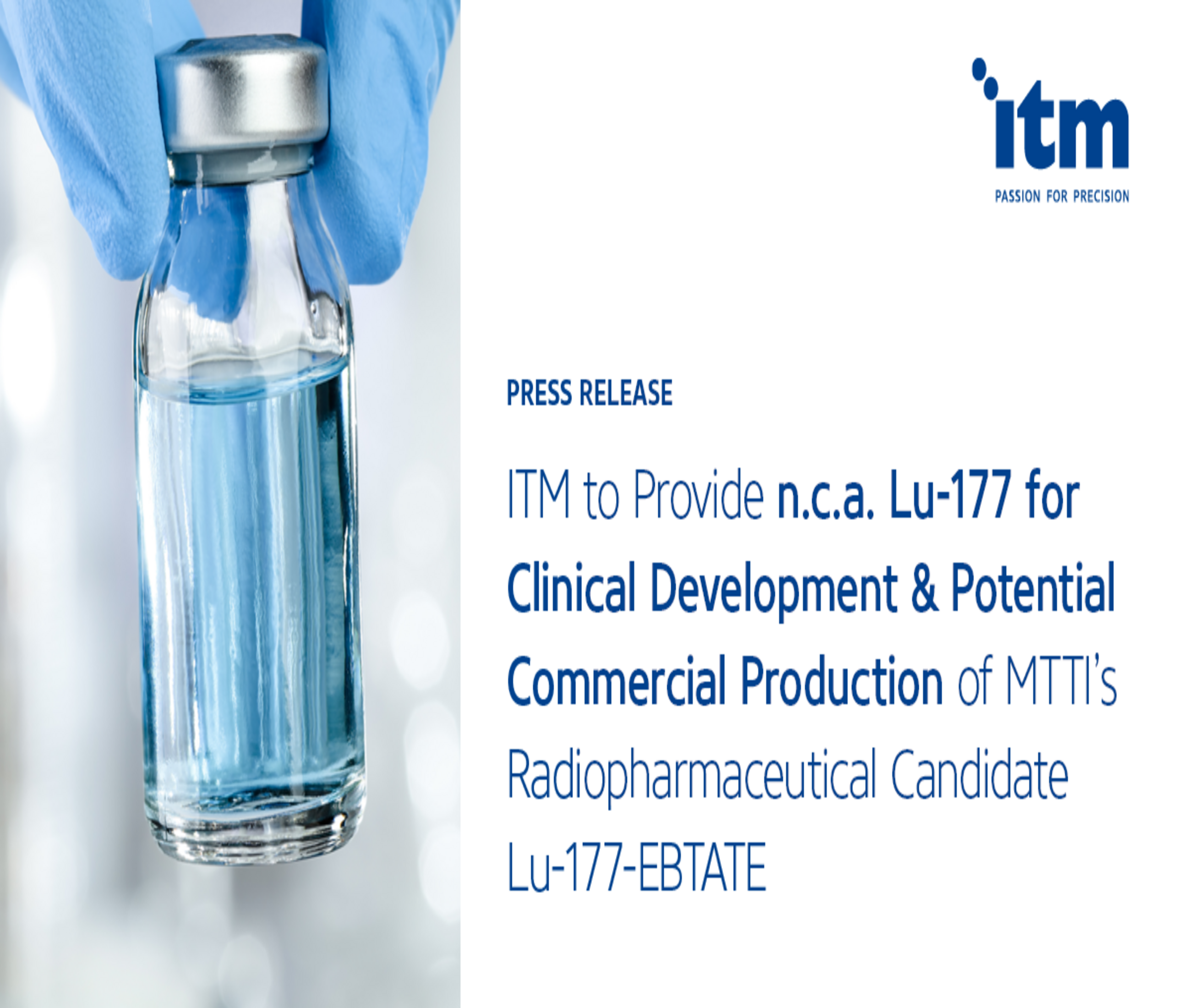 “This agreement underscores the potential of our n.c.a. lutetium-177 to provide therapeutic value to patients with hard-to-treat tumors and we are pleased to contribute to MTTI’s exciting program,” comments Steffen Schuster, CEO of ITM. “Through our long-term experience in radioisotope technologies, our proprietary pipeline of targeted radiopharmaceuticals and our supply agreements with pharmaceutical companies, we aim to further expand and support the development of Targeted Radionuclide Therapies to improve clinical outcomes and quality of life for patients worldwide.”