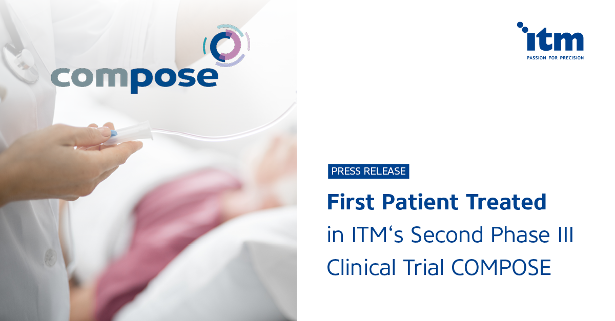 Garching / Munich, January 25, 2022 – ITM Isotope Technologies Munich SE (ITM), a leading radiopharmaceutical biotech company, today announced that the first patient has been treated in its second pivotal phase III clinical trial, COMPOSE (NCT04919226), evaluating the company’s lead radiopharmaceutical candidate, ITM-11 (n.c.a. 177Lu-edotreotide), for the treatment of gastroenteropancreatic neuroendocrine tumors (GEP-NETs). ITM-11 is a Targeted Radionuclide Therapeutic consisting of the high-quality radioisotope no-carrier-added lutetium-177 (n.c.a. 177Lu) fused with a somatostatin analogue to specifically target somatostatin receptor-positive (SSTR+) GEP-NETs. While COMPOSE is evaluating ITM-11 for the treatment of well-differentiated high grade 2 and grade 3 GEP-NETs, the radiopharmaceutical is also being investigated in ITM’s ongoing pivotal phase III trial, COMPETE (NCT03049189), in patients with grade 1 and 2 GEP-NETs. GEP-NETs are rare types of tumors that can occur in the pancreas or in other parts of the gastrointestinal tract. Due to their frequent asymptomatic and progressive nature, GEP-NETs often present late with advanced disease requiring innovative therapeutic measures. The trial design of COMPOSE was recently presented at the 2022 ASCO Gastrointestinal Cancers Symposium (ASCO-GI) and the 2021 North American Neuroendocrine Tumor Society (NANETS) annual symposium.