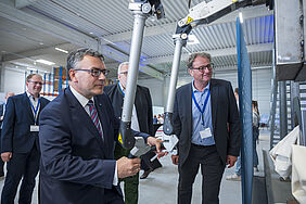 - Minster of State Dr. Florian Herrmann with ITM CEO Steffen Schuster at a mock-up hot cell for the production of lutetium-177