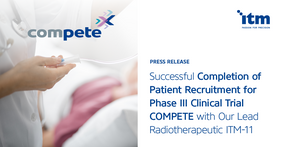 Garching / Munich, Germany – April 11, 2022 – ITM Isotope Technologies Munich SE (ITM), a leading radiopharmaceutical biotech company, today announced the randomization of the 300th patient and thus the successful completion of patient recruitment in its phase III clinical trial COMPETE, evaluating the efficacy and safety of its lead Targeted Radionuclide Therapy candidate, ITM-11 (n.c.a. 177Lu-edotreotide), in grade 1 and 2 gastroenteropancreatic neuroendocrine tumors (GEP-NETs). Completing patient recruitment is an important milestone demonstrating the progress of the COMPETE study, with which ITM aims to prove the potential of its therapeutic approach to provide added value to patients with GEP-NETs by improving both, treatment outcomes and the patient’s quality of life.