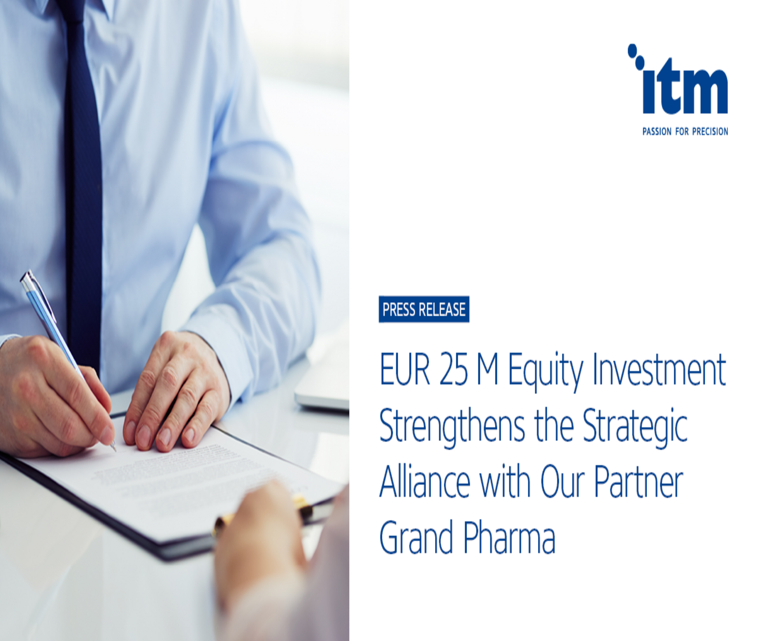 Garching / Munich and Hong Kong, February 16, 2022 – ITM Isotope Technologies Munich SE (ITM), a leading radiopharmaceutical biotech company and Grand Pharmaceutical Group Limited (GP), a diversified global pharmaceutical company listed in Hong Kong, today announced that ITM and a subsidiary of GP have entered into a definitive agreement under which GP will make a EUR 25 million (USD 28 million) equity investment in ITM. The agreement will further deepen the strategic collaboration between the two companies and support ITM to further expanding its broad pipeline of precision oncology treatments and diagnostics in Greater China.